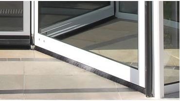 Cuando nos encontramos con puertas que tienen formas curvas como por ejemplo las puertas giratorias recomendamos el cepillo strip de base flexible.