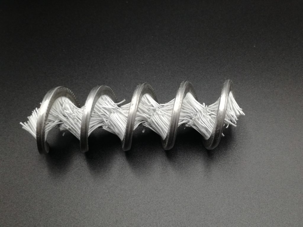 Para trabajos duros como filtrar aguas residuales en depuradoras se puede fabricar la espiral con el lomo a doble banda, grapado hacia el interior, para evitar que las fibras se escapen al ejercer mucha presión.