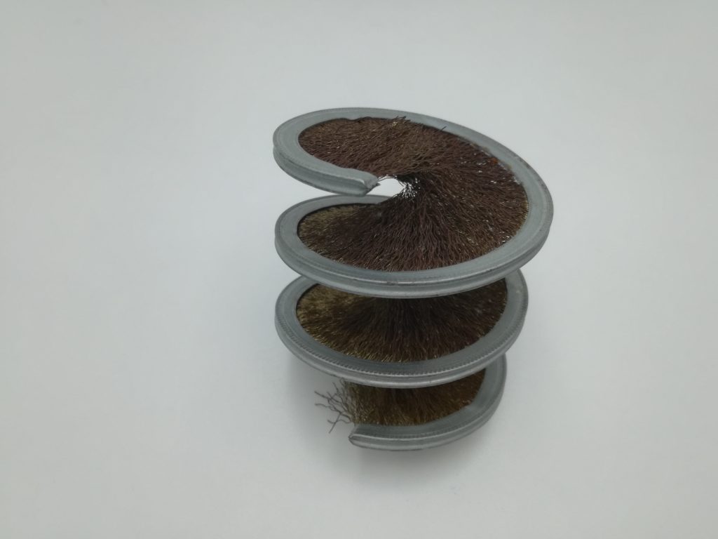 Cepillo Strip Cilíndrico de Espiral Metálica con lomo de acero galvanizado o acero inoxidable + la fibra que necesite para su aplicación, incluso púa metálica. Para instalar en sinfines, hélices, depuradoras, tambores con camisa para filtrado. Arrastran residuos, múltiples aplicaciones. Se fabrican a medida.
