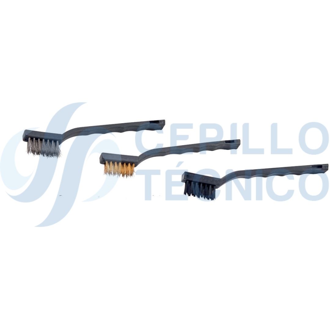 Available with the following fibers; steel, stainless steel, brass, bronze, polyamide, polypropylene, horse hair.Also called watchmaker’s and goldsmith’s brushes.