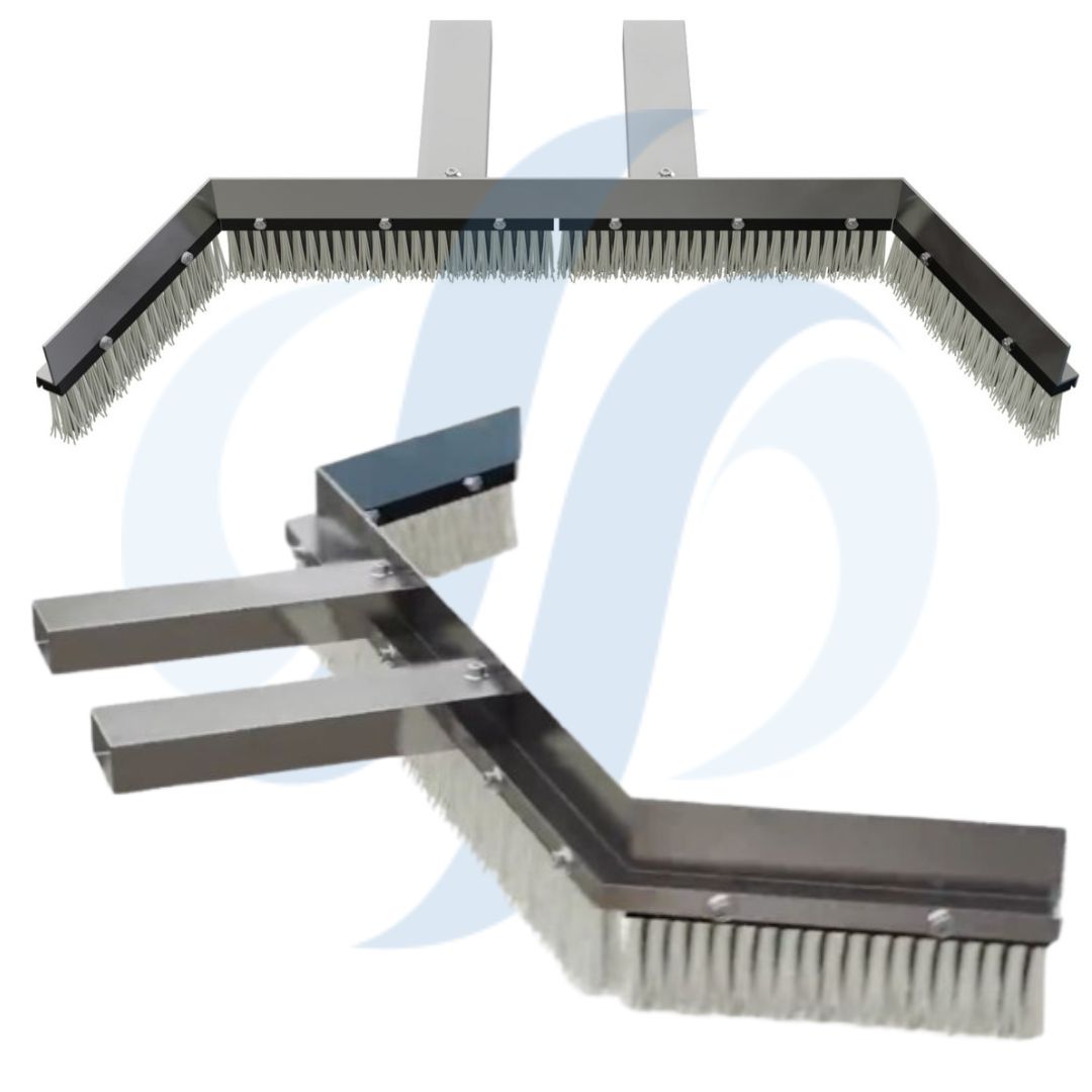Se trata de una estructura de acero inoxidable muy robusta con entradas para horquillas de carretillas elevadoras y otros vehículos con horquillas, donde se instalan cepillos empujadores con gran fuerza de arrastre, en tramos intercambiables individualmente.
