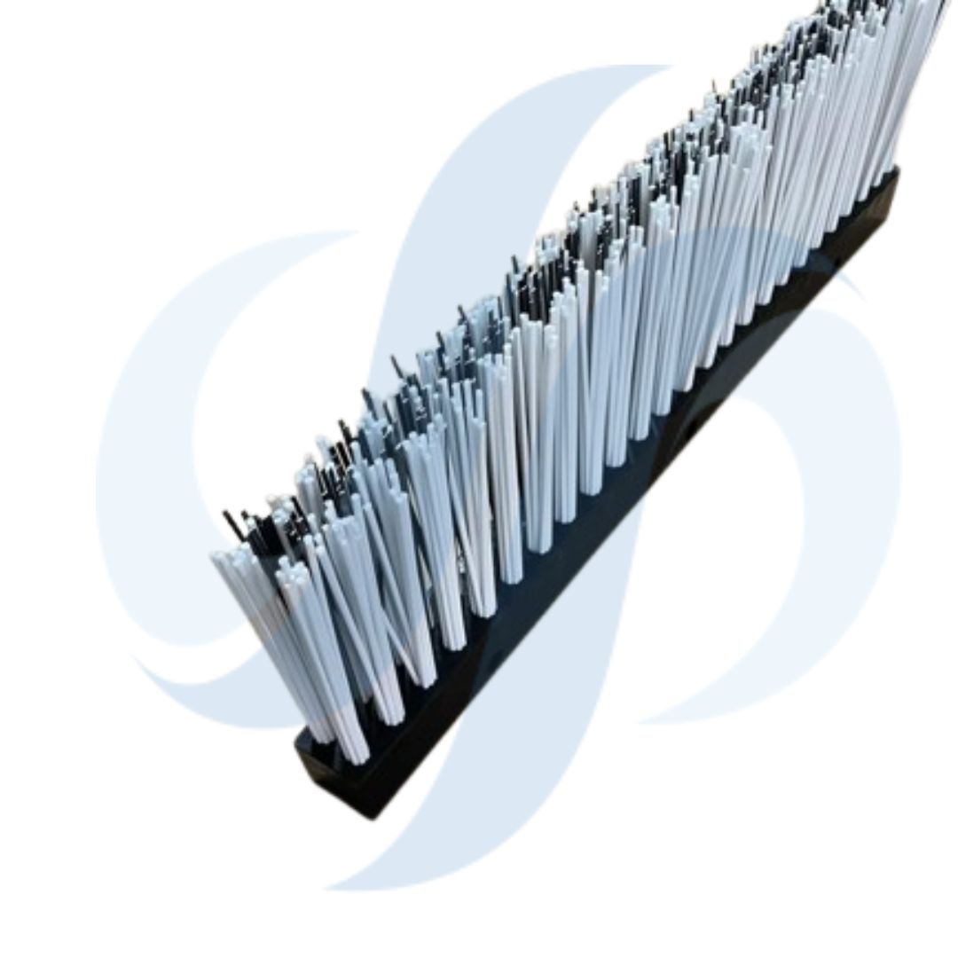 Para limpiezas y barridos donde se necesite una gran fuerza de arrastre disponemos del cepillo empujador; cepillos listones de base plástica insertados con púa de acero plano y fibra sintética de alto rendimiento.