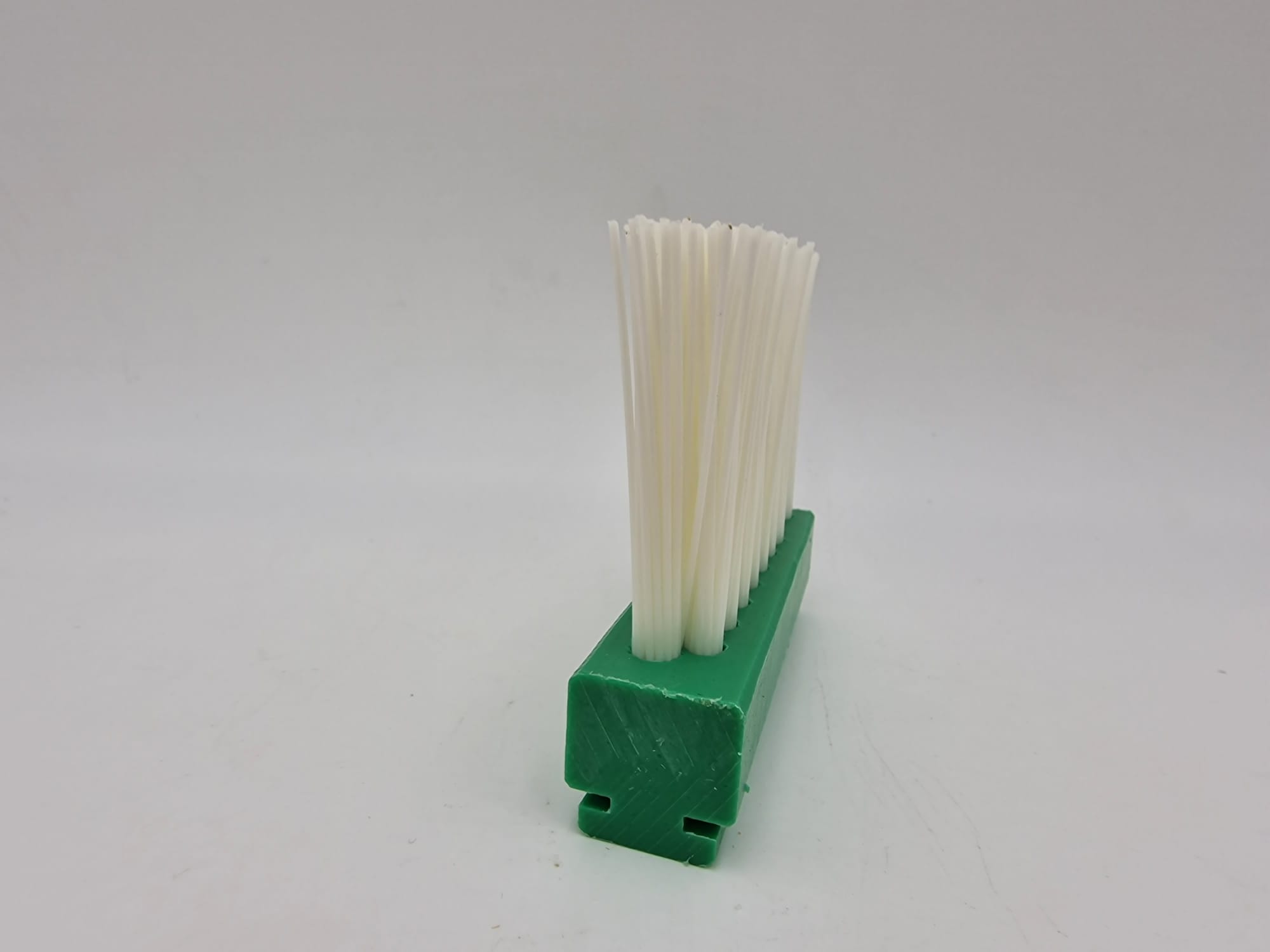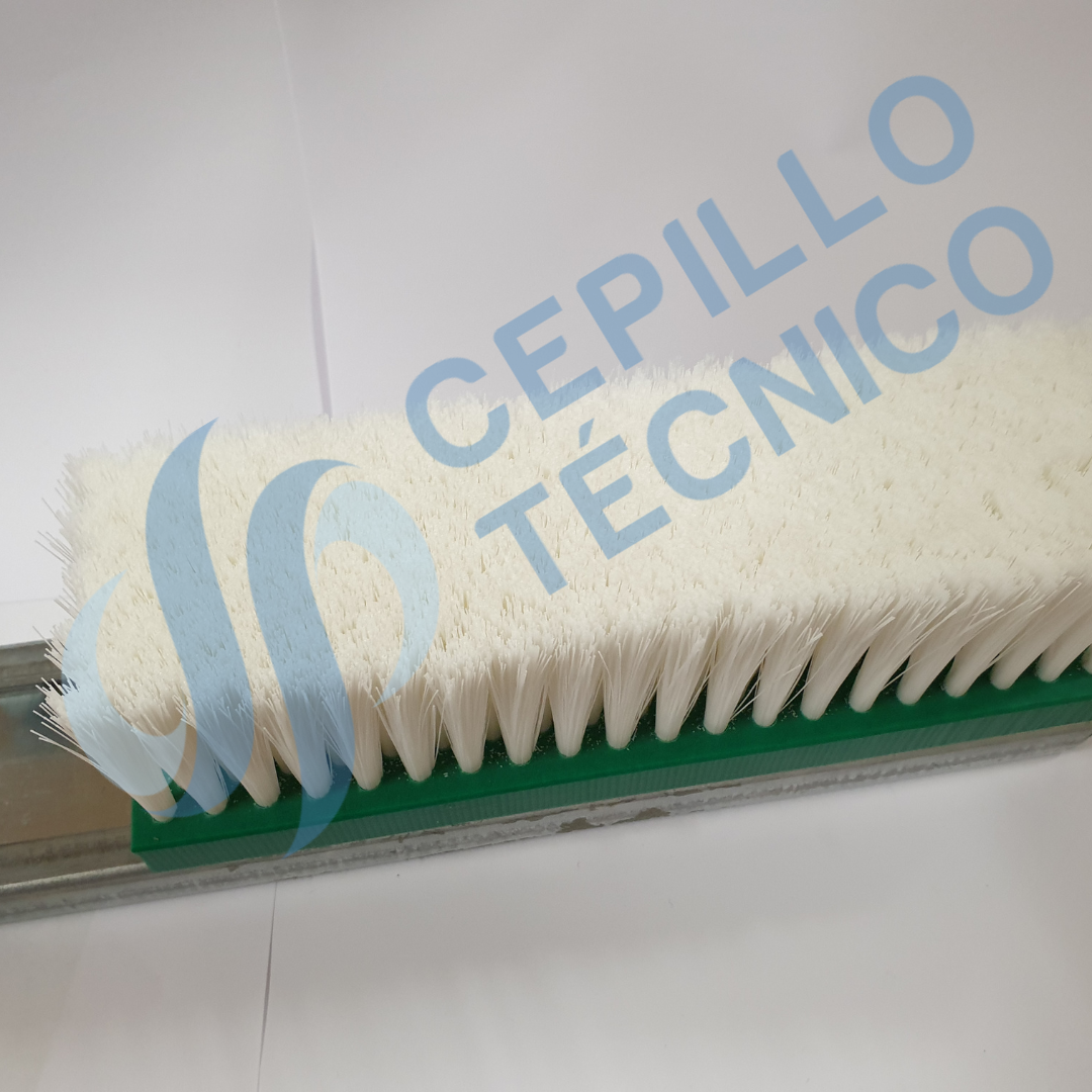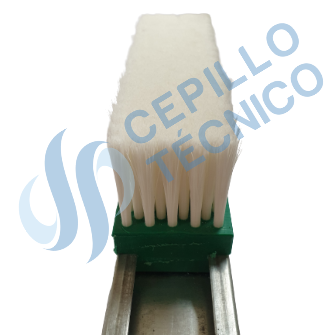 Cepillo listón con cuerpos en polipropileno, poliamida y otras opciones con la fibra que necesite para su aplicación. Con y sin guía metálica.