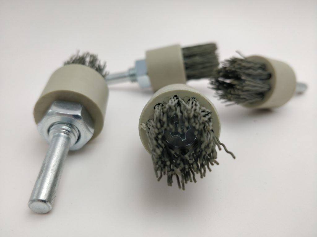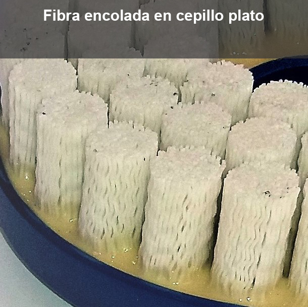Los mechones de fibra insertados pueden ser rectos o inclinados y pueden ser insertados o encolados en la base con diferentes densidades. Este tipo de cepillo se usa en varias aplicaciones como: desbarbar, deslizar, limpiar, lavar vidrios, quitar cordones de soldadura, pulir, acabado de superficies, desbarbado de bordes, desbarbado de superficies, eliminación de abrasivos, desincrustar, quitar pintura…