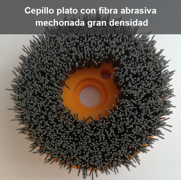 El cepillo Plato de Disco circular para desbarbar y limpiar se recomienda principalmente para procesos de limpieza en superficies planas. La superficie de trabajo es perpendicular con respeto al eje de rotación, suelen estar motorizados.