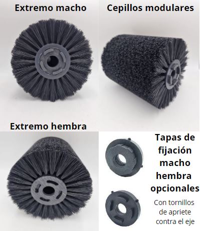 Son cepillos cilíndricos modulares; los módulos se unen entre ellos para formar el largo total deseado.